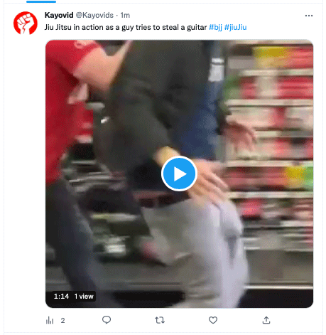 Een gitaar stelen liep niet goed af voor een man die niet had gerekend op de jiu jitsu kwaliteiten van een van de winkelmedewerkers. <--->