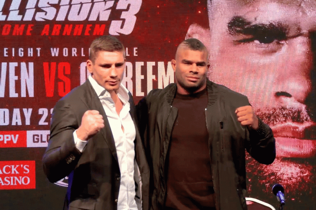 Alistair Overeem en Rico Verhoeven kwamen vanavond voor het eerst oog in oog te staan. De persconferentie die wel iets weghad van een talkshow kende een relaxte sfeer. Toch zegt Overeem er niet te lang over willen doen om het gevecht met Verhoeven. De verzamelde pers kreeg de kans om vragen te stellen aan beide vechters. Ook Overeem stelde tussendoor vragen aan Verhoeven. Iets wat je zelden ziet in een eerste ontmoeting tussen vechters die tegen elkaar de ring in gaan.