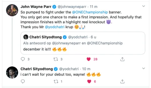 Wellicht dat Parr deze kans dus snel gaat krijgen. alhoewel wordt verwacht dat hij eerder aan een toernooi mee zal doen. Via Twitter werd duidelijk dat december de richtdatum is voor het debuut van Parr bij ONE. Bevestigd door de grote baas van ONE, Chatri Sityodtong zelf op vrijdag.