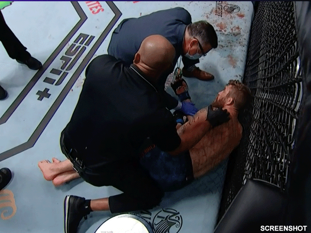 De UFC fans hadden amper de tijd om met hun ogen te knipperen of de wedstrijd was al afgelopen. In slechts 17 seconden ging Meerschaert neer na een rechtse knalharde stoot van Chimaev. De impact in de vrijwel lege zaal was goed te horen.
