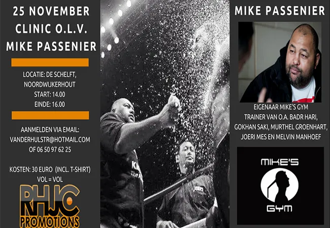 Dat kan want op 25 november (van 14 uur tot 16 uur) zal de succestrainer, Mike Passenier een clinic komen verzorgen in de Schelft (Noordwijkerhout). De sportschool van Mike Passenier, Mikesgym heeft al diverse toppers voortgebracht o.a. Badr Hari, Gokhan Saki, Joeri Mes en Murthel Groenhart.