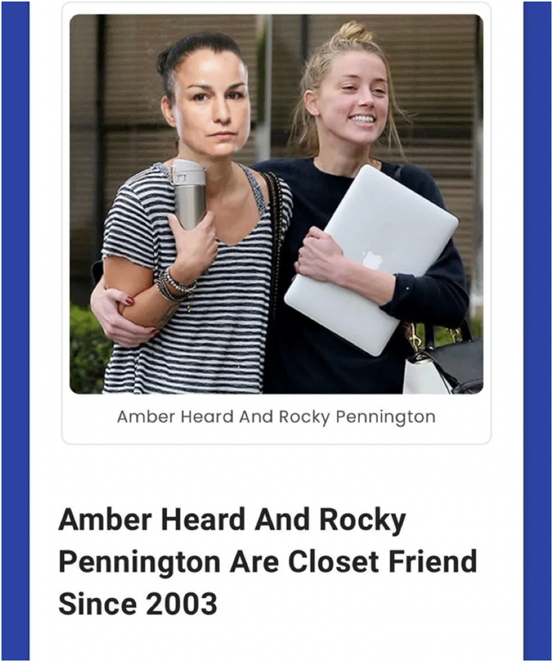 Raquel Pennington goed bevriend zou zijn met Amber Heard de inmiddels vergruisde ex-vrouw van Johnny Depp. Heard en Depp zijn verwikkeld in een rechtszaak die niet zou misstaan als een echt filmscenario. De twee beschuldigen elkaar van onder andere geweld, ook zou Heard haar behoefte hebben gedaan in het bed van Depp.