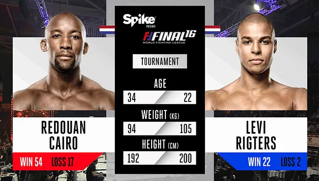 De boomlange Levi Rigters trad aan tegen de ervaren Reduaon Cairo, de partij begon al snel met twee knockdowns door Rigters over Cairo. Deze werd tot twee keer toe geveegd door Rigters. Deze ging al snel voor de KO, en Cairo kreeg twee keer acht tellen. Na een stoten regen van Rigters ging Cairo wederom onderuit en werd de partij beëindigd door de scheidsrechter. Winst voor Rigters op TKO.